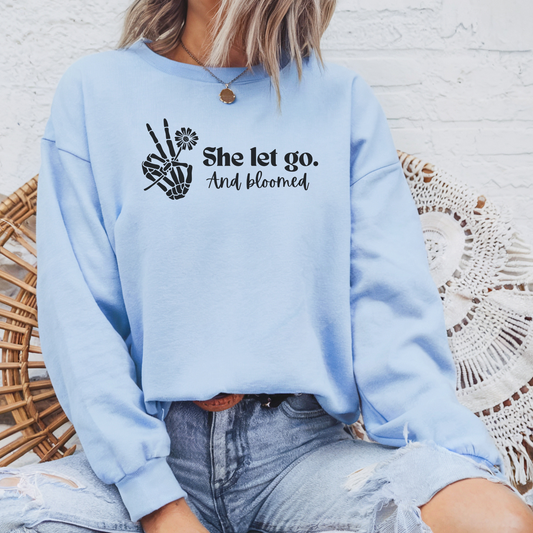She Let Go And Bloomed Sweatshirt | Inspirational Graphic Crewneck