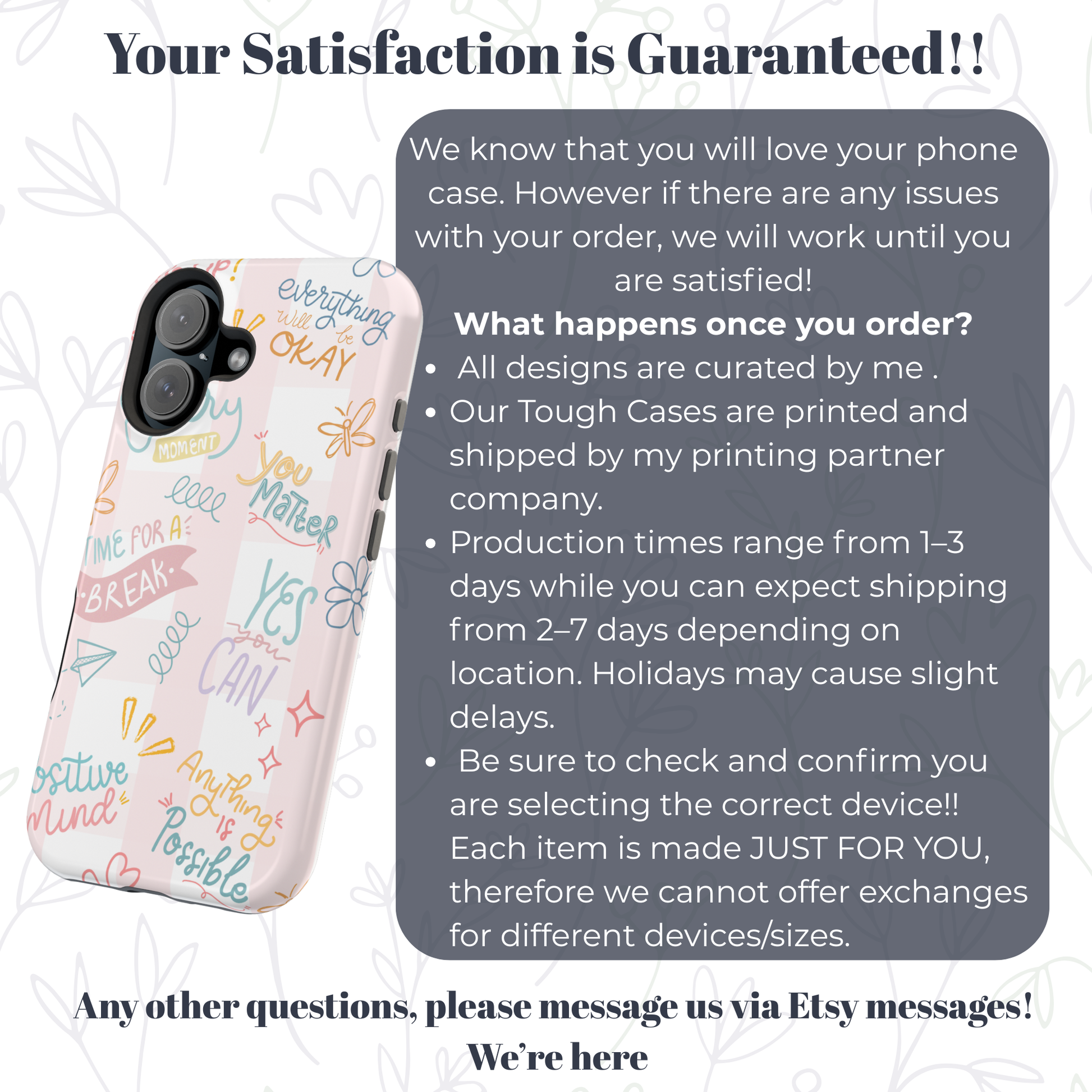 This impact-resistant phone case is a small ritual of calm for someone who values strength with a soft heart. Retro doodles and uplifting affirmations wrap the exterior in a cheerful, intentionally imperfect pattern — a quick nudge of encouragement whenever the phone is picked up. The tough shell and cushioned inner liner mean it sits comfortably in everyday life: commuting, coffee runs, or late-night journaling sessions. Built-in magnets let you snap on MagSafe accessories without breaking the flow. It’s a tactile reminder to breathe, keep going, and carry a little self-care wherever you go.