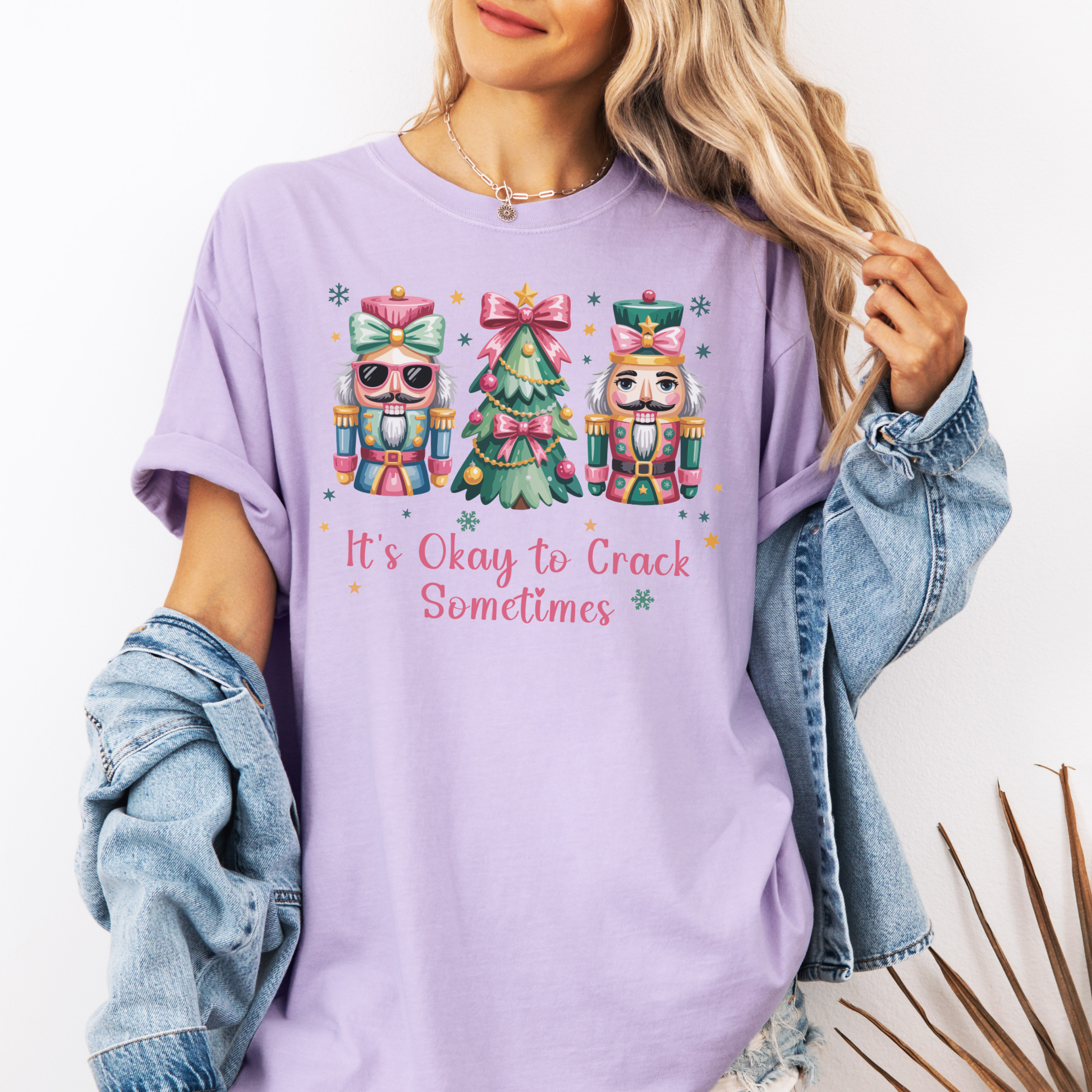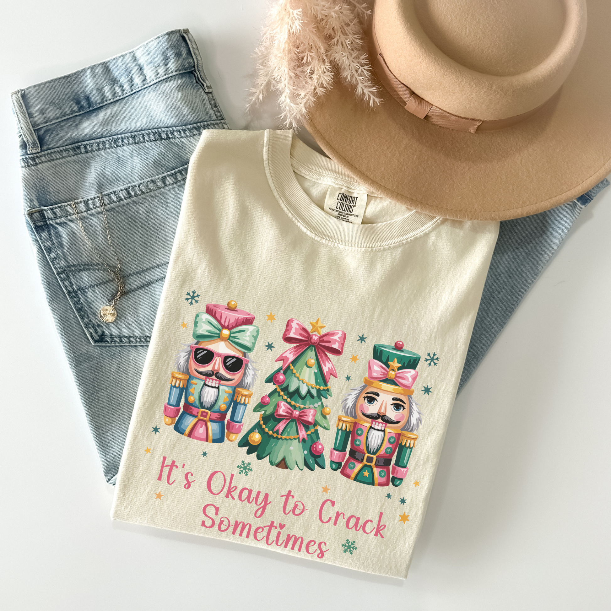 This cozy tee is a playful reminder that even the strongest “crack” sometimes — and that’s perfectly okay! Featuring two festive nutcrackers and a holiday tree, this shirt blends Christmas cheer with a touch of self-love and compassion.