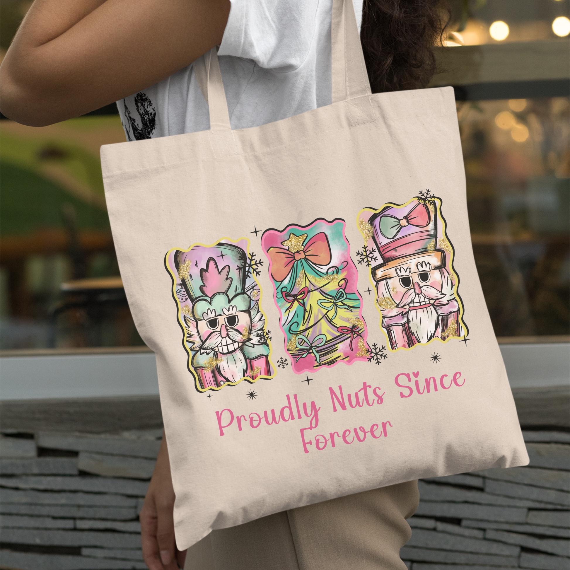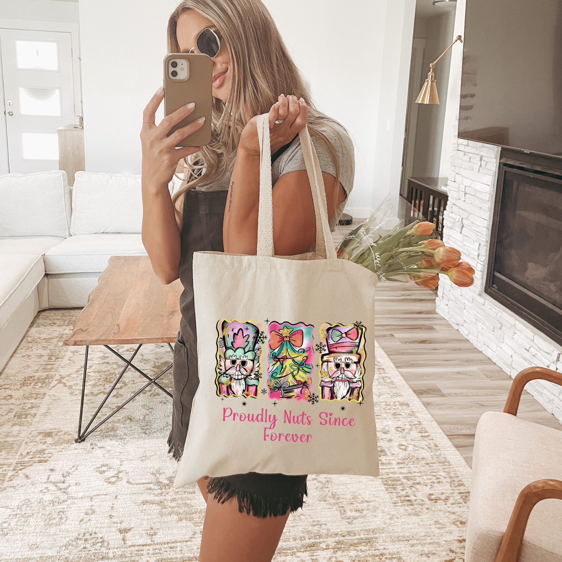 Fun, quirky, and full of holiday spirit! This colorful nutcracker tote celebrates embracing your uniqueness all year long. With its bold colors and playful phrase, it’s the perfect mix of festive humor and self-confidence — a must-have for anyone who’s a little delightfully “nutty.”